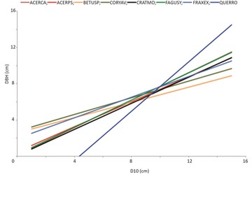 These were published as figures 2 and 3 in 'Allometry and growth of eight tree taxa in United Kingdom woodlands.'